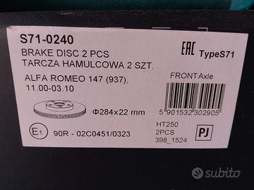 vendo a 70 euro 2 dischi anteriori ventilati per ALFA romeo gt 147 156 nuovi. 5 fori. marca SRL comprati per errore.