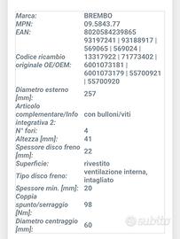 Dischi freno Brembo piu pastiglie freni