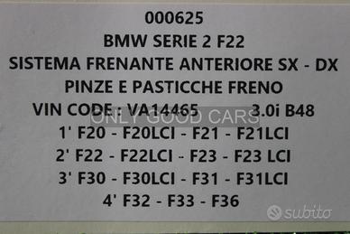 Dischi Pinze Freni Pasticche BMW F20 F21 F22 00625
