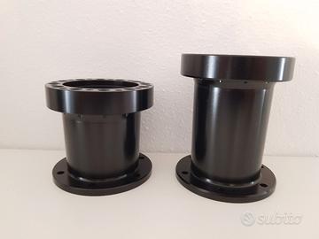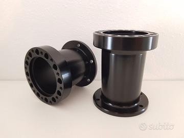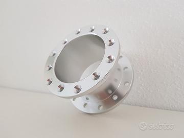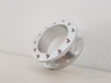 Vendo distanziale sterzo per volante sportivo realizzato dal pieno in alluminio con strumenti CNC avente spessore da 3, 5, 7 e 10 cm per volanti racing sparco, omp, toora, sabelt, isotta, fk, nardi, luisi, ecc... Attacco a 6 fori classico con distanza tra i fori di 70 e 74 mm tradizionale e scanalatura per alloggiamento pulsante clacson. Monta su peugeot 106, citroen saxo, xsara, punto abarth GT, subaru impreza, lancer evolution, opel corsa, fiat panda, escort cosworth, renualt clio rs williams, peugeot 306 205 206 207 104, rover mg, focus rs, suzuki vitara, pajero, nissan patrol, ecc... Disponibile con attacco 6x70 mm e 6x74 mm., viti di installazione specifiche fornite nell'annuncio.