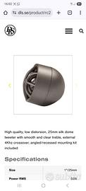 DLS prestigiosa azienda svedese di prodotti hi-fi, lancia un tweeter della serie Reference con caratteristiche di pregio: cupola morbida da 25m.m. , griglia robusta e trasparente al suono, grande versatilità di montaggio, crossover 12db a 4.000hz , accessori d'installazione e suono dettagliato ma morbido, insomma il Natural Sound tanto caro a DLS. Il prezzo è assolutamente concorrenziale considerando l'altissiko livello del componente.