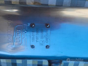 Doppio scarico Inox con Silenziatore per Hunter, per giulietta 1.4 turbo, in ottime condizioni usato 3 mesi, qualche lieve ammaccatura e da far controllare e eventualmente se necessario raddrizzare, monta su centrale originale Alfa.