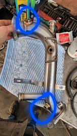 down pipe mai usato , solo messo per prova . È DA MODIFICARE! ( vedi foto con evidenziate i due ingressi sonda), allego anche foto di boccola per sonda da ricreare al tornio e saldare sul downpipe.