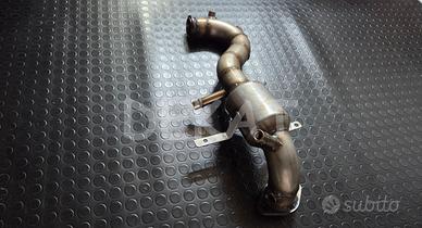 Downpipe ARTIGIANALE realizzato con tubo in acciaio INOX 304, adatto a sostituire il DPF sui motori 2.0 MJET dei marchi Fiat / Alfa / JEEP, omologati EURO6B SI RIBADISCE: SOLO MOTORI 2.0 MJET EURO6B - NON MONTA SU EURO5 O EURO6 CON ADBLUE 500X E RENEGADE SOLO CAMBIO MANUALE PER CONFERMA COMPATIBILITA' INVIARE UNA MAIL CON I DETTAGLI DELL'AUTO, POSSIBILMENTE ALLEGANDO IL LIBRETTO Il tubo è predisposto per alloggiare le sonde come l'originale, nel dettaglio: – 2 sonda lambda – 3 sensori di temperatura – 1 sensore di pressione con filettatura – 1 sensore di pressione con tubicino saldato (alcune versioni hanno un solo sensore di pressione, in questi casi se ne può chiudere uno a scelta sul tubo). Caratteristiche principali: – tubo in acciaio inox 304, diametro 60mm esterni – staffe in acciaio inox 304 – cono di fissaggio su turbo in acciaio c40, ricavato dal pieno e rifinito al tornio – flangia di scarico in acciaio c40, tagliata al waterjet e rifinita a mano – boccola sonda lambda (2), boccola sensore di temperatura (3), perno filettato sensore di pressione (1), tubicino di pressione saldato (1), in acciaio c40 – saldato a mig COMPATIBILITA' Alfa Romeo – 5Y Giulietta M.Y. 2013 (2013 – 2016) – 1958cc 175cv Euro6 Fiat – 5F 500X 2015 in poi – 1956cc 140cv Euro6 (solo versioni con cambio manuale) Jeep – 5I Jeep Renegade Emea-Row 2014 in poi – 1956cc 140cv -170cv Euro6 (solo versioni con cambio manuale) Modalità d'ordine. 1) Via email contattando tramite la chat di subito 2) Via whatsapp al 3293022515, per poter identificare velocemente il prodotto di interesse indicare sempre il link 3) Tramite il nostro ecommerce Modalità di pagamento. Tramite bonifico o le più comuni carte di credito / debito Spedizione 10 euro