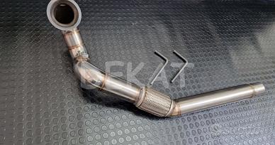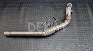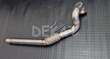 Downpipe ARTIGIANALE realizzato con tubo in acciaio INOX 304, adatto a sostituire il catalizzatore OPF / GPF sui motori 2.0 245 / 300 CV TSI benzina del gruppo VW - SOLO TRAZIONE ANTERIORE