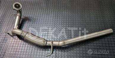 Downpipe ARTIGIANALE realizzato con tubo in acciaio INOX 304, adatto a sostituire il DPF sui motori 1.2 e 1.6 TDI, step potenza 75cv / 90cv / 105cv, codici motore CFW / CAY (vedi compatibilità in basso)
