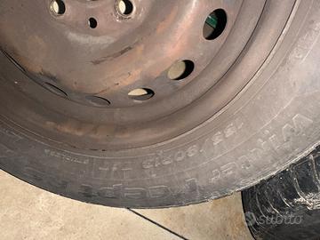 due cerchi in ferro per fiat con pneumatici usurati 155/80/13