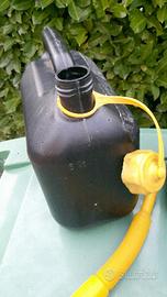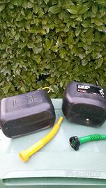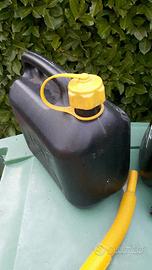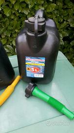 DUE TANICHE BENZINA O MISCELA O GASOLIO O ALTRO CARBURANTE DA LITRI 5, PERFETTE, ENTRAMBE CON BECCUCCIO PER VERSARE IL LIQUIDO.