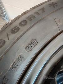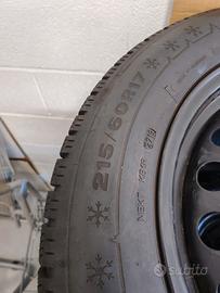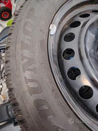 Vendo 4 ruote complete, gomme invernali DUNLOP WINTER SPT5 3PMSF 215/60 R17 96H per TOYOTA C-HR già montate su cerchi in acciaio con sensori di pressione TPMS Toyota, e in regalo una asta porta gomme (nella foto) da garage per ricovero estivo. Km percorsi: 7'000 ; battistrada residuo oltre 8mm , DOT 2719 (come da foto). Sono inclusi i bulloni dadi specifici per il cerchio per il perfetto adattamento (sono diversi da quelli dei cerchioni estivi in lega). Possibile ritiro di persona a Codroipo (UD), Italia