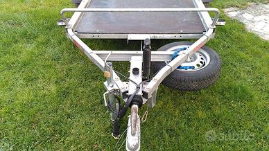 Vendo, come da titolo, carrello ELLEBI LBW 500 M, per trasporto attrezzature turistiche e sportive (2 moto/quad), usato pochissimo, ottime condizioni del telaio (a parte alcune parti leggermente arrugunite), pneumatici buoni anche se datati; sistema frenante.