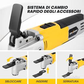 【Design a Cambio Rapido della Lama】Chiusura a sgancio rapido per il cambio degli accessori senza attrezzi, cambio rapido della lama per una maggiore efficienza. È dotato di una robusta testa a ingranaggi in metallo, che lo rende più resistente. Sistema di fissaggio universale compatibile con la maggior parte degli accessori di altre marche.