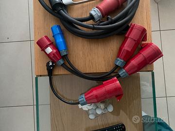 EV charging cable 32 a 22 kw , wall box portabile con 4 diversi adattatori , 32 amperi , 16 amperi , presa camper e presa normale . ideale per viaggi , case vacanze , carica a lavoro