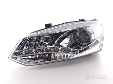 Fanali anteriori DAYLINE cromati con luci diurne-look a led per VW POLO 6R 2009> (escluse vetture con xenon di serie)