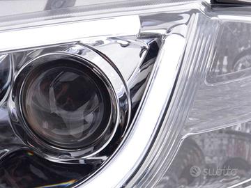 Gruppi ottici anteriori cromati per AUDI A3 8P 3/5 porte 2003>2008 con frecce integrate e luci diurne a fibre ottiche (escluse vetture con kit xenon di serie)