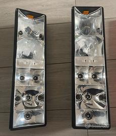 Questi fanali posteriori per pullman presentano un design rettangolare e modulare, con una struttura in plastica trasparente suddivisa in tre sezioni: la parte superiore arancione per l’indicatore di direzione, la parte centrale rossa per la luce di posizione e di stop, e la parte inferiore bianca per la luce di retromarcia. L’interno è caratterizzato da una struttura riflettente cromata con alloggiamenti per le lampadine, garantendo un’illuminazione efficiente e ben distribuita. Il retro, realizzato in plastica nera, include i punti di fissaggio per un montaggio sicuro e le aperture per il cablaggio elettrico. Questi stop sono progettati per offrire massima visibilità e sicurezza su strada, risultando ideali per autobus e pullman di grandi dimensioni. Nuovi. Mai usati.
