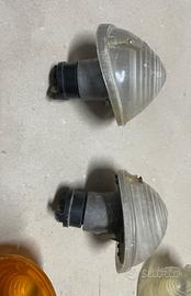 2 Fanalini indicatore di direzione e posizione per fiat 500 storica 110 F L d’epoca. Il portalampade è in alluminio, uno è in condizioni migliori, l’altro è ossidato ed è da pulire. Aggiungo 2 plastiche bianche e 2 arancioni (1 è lesionata)