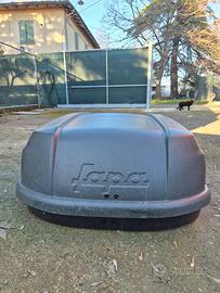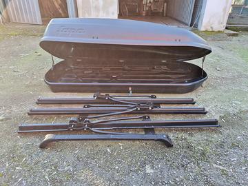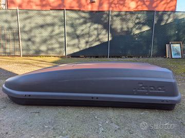 Vendo baule grande auto Faba usato, ma in ottime condizioni in più regalo porta bici tetto auto. Misure Baule: 180x80x39