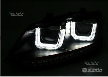 Coppia fanali anteriori TUBE LED FRECCIA DINAMICA LED Golf 7 Look BLACK VERSION! VW Polo 6R e 6C dal 2009 al 2017 con tecnologia a led ultra luminosi! 3 varianti: - Sfondo Nero / Linea Cromata - Sfondo Nero / Linea Rossa - Sfondo Cromato / Linea Cromata Con 2 "U" a led bianchissimi TUBOLARI come la golf 7 Montano lampade alogene: H7 (anabbaglianti) + H7 (abbaglianti) Regolazione elettrica altezza fascio di luce (motorini elettrici già inclusi ed INTEGRATI) confezione: 2 pezzi (destro & sinistro) Non necessitano di resistenze e non provocano nessun errore in centralina o sul check luci! Omologati per uso stradale! Omologazione stampata sul faro come gli originali!
