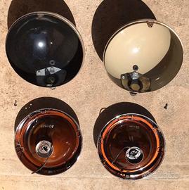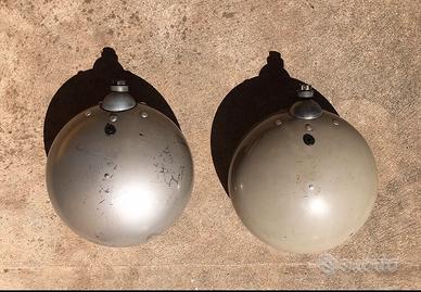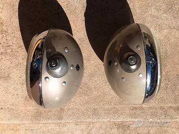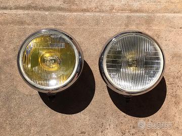 Lo spettacolo siamo noi. Fari Fanali Cibiè. Diametro della lente cm. 18. Tutto fuori solo i fanali cm 21,5. Con la copertura inserita cm 22,5 circa. Si precisa che entrambi i fanali hanno le stesse identiche dimensioni. Sia di "vetro", che di ingombro esterno. Quello di sinistra è un SuperOscar, quello di destra è un Oscar. Belli. Bellissimi. Sani. Con le sue coperture originali sono veramente "poderosi", possenti, vigorosi. MAESTOSI. Non conoscono la ruggine. Cromature eccellenti. Parabole perfette. Ovviamente hanno i segni del tempo. Qualche graffio nelle scocche c'è. In una c'è una lieve ammaccatura. Ho volutamente preservato il vissuto, anche se avrei potuto farle verniciare. Ma non l'ho fatto. Hanno la loro vernice originale. Sono tutti in metallo. Nulla in plastica, solo le coperture ovviamente, che sono sane, perfette, senza la benché minima rottura. I fari hanno il loro peso. Il singolo faro pesa oltre Kg. 1,200. Sono fari che hanno vissuto l'epopea delle corse, ma che sono arrivati ai giorni nostri in ottima forma. Non sono stati fermi in letargo, chiusi in una scatola e riposti su uno scaffale. Hanno vissuto anni di gloria su prestigiose auto da corsa. Sono stati gli occhi della notte di pilota e navigatore nei Rally più duri e impegnativi. Montati sono veramente straordinari. Il fascino retrò è ineguagliabile. Hanno un effetto accessorio eccellente, oltre che luminoso. Made in France. Non includono le lampadine. Per questi piccoli gioielli, direttamente a casa vostra, spedizione inclusa, isole comprese, la richiesta è di Euro 150 comprensivo di spedizione, con pacco bene imballato e protetto. Grazie.