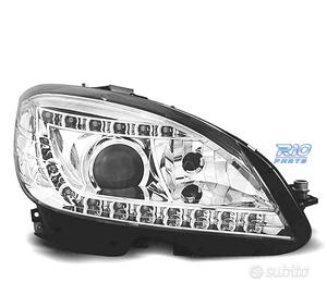 FARI BIXENON MERCEDES CLASSE C W204 07-11 LUCE DIURNA FONDO CROMATO