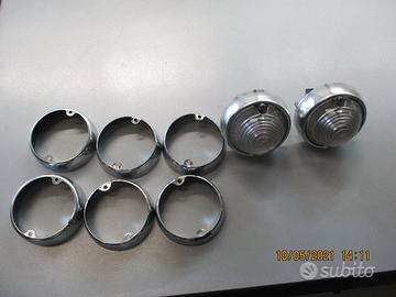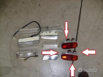 N. 2 fanalini anteriori AR Giulia Super cadauno 40 € N. 1 coppia plastiche fanalini anteriori GIULIA TI - 50 € N. 1 Vetro faro anteriore SX AR 164 anni 1992-97, nuovo e originale - 170 € N. 1 coppia fanalini posteriori completi nuovi e originali per alfa romeo ondine anni '60 e Fiat Abarth 850 TC 300 € N. 6 anelli fanalini anteriori cromati per AR Giulia/Giulietta Spider, usati in stato € 20 cad. N. 2 fanalini completi anteriori freccia bianchi NUOVI per AR Giulia/Giulietta Spider € 80 cad. N. 1 faro anteriore destro Valeo, usato in buono stato, per AR 147 - €180 N. 1 faro SIEM nuovo (giacenza magazzino) per Alfetta GT anni 1974-'82 - € 160 N. 1 faro SIEM usato in buono stato per Alfetta GT anni 1974-'82 - € 100 N. 1 faro SIEM usato, leggermente rovinato nell'interno come da foto per Alfetta GT anni 1974-'82 - € 60 N. 1 coppia fanalini post. Carello, usati con quello di sx leggermente segnato per AR 33 anni 1989-95 - € 160 N. 1 coppia fanalini frecce laterali usati pari al nuovo per AR 2000/2006 Spider/Touring - € 150 N. 2 fanalini targa Carello per Giulia GTI, usati in buono stato - € 30 cad. Disponiamo inoltre di altri ricambi Alfa Romeo originali Chiedere del sig. Ettore