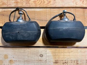 Fari supplementari antinebbia Lucas (Gran Bretagna) anni 70/80 vetro giallo e coprivetro di protezione in plastica rigida e cavo di chiusura in gomma funzionanti.