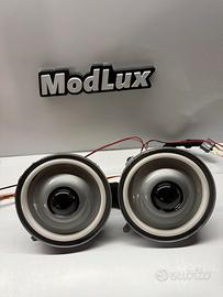 •Modello con Angel Eyes Led, un anello luminoso che svolge la funzione di luce di posizione e indicatore di direzione, collegabile direttamente all’impianto elettrico originale