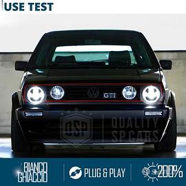 FARI ANTERIORI FULL LED Angel Eyes 7'' per Volkswagen Golf MK2 (1983-1992), OMOLOGATI, Luce Bianco Ghiaccio 6500K | Anabbaglianti + Abbaglianti + Posizione DRL + Frecce | Con LED OSRAM - NUOVE TECNOLOGIE FULL LED | Luci di Posizione DRL + Luci Anabbaglianti + Abbaglianti + Frecce - FACILE MONTAGGIO | Funge da ricambio perfettamente compatibile - NO ERRORE - OMOLOGAZIONE E24 | Omologati per uso Legale su Strada - RESISTENZA IP67 | Resistenza ad Acqua, Polveri ed Agenti Atmosferici - LUCE POTENTE | Luce Bianca 6500K, 18.000Lm, 120W INFO: Fari di ultima generazione FULL LED da 7"" Modello HALO ispirati alle più recenti Tecnologie Fari LED, con Lente in POLICARBONATO e SCOCCA in ALLUMINIO PRESSOFUSO, parabola interna Nera. Realizzati con LED OSRAM, driver e filtri antisfarfallio INCORPORATI per una tensione constante e priva di FASTIDIOSI SFARFALLII, conservano una presa identica al proprio mezzo H4 o H13 per un montaggio privo di modifiche, semplicemente in sostituizione ai propri. COMPATIBILITÀ - PER Volkswagen Golf MK2 (1983-1992) - Codice di compatibilità con altri fari: 6014; 6015; 6016; H6024; PAR56 MONTAGGIO: - il faro possiede una presa H4 o H13, pertanto non sarà necessario apportare modifiche al cablaggio, varrà la regola del PLUG AND PLAY (solo collegamento) DETTAGLI TECNICI: - LED OSRAM di Qualità - Colorazione Luce Effetto Lampo da 6500K - Potenza di illuminazione di 18.000 LUMEN - 2 Filtri interni di regolazione tensione per evitare SFARFALLII - Assorbimento potenza 120W e Voltaggio 9-16V - Grado di resistenza ad acqua e polveri IP67 - Temperatura di lavoro Compresa tra - 40°C / +65°C PER INFO CONTATTARE AL 3927091031 ANCHE LINEA WhatsApp OPPURE VIA E-MAIL: rtautoitalia2018@libero.it CONSEGNA: - Effettuiamo Spedizioni 24-48H in TUTTA ITALIA - Ritiro in Sede con Possibilità di Visionare il Prodotto - Vendiamo solo Articoli Nuovi PAGAMENTI: - PayPal - Con Carta - Bonifico Bancario - Alla Consegna