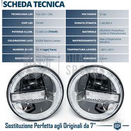 FARI ANTERIORI FULL LED 7'' Modello Glace, per Jeep CJ, OMOLOGATI per uso Stradale | Luce Bianca Potente 6500K, 12.000 Lumen, Con LED OSRAM - OMOLOGATI E24 ed IP67: Omologazione per l'uso su Strada - LUCE BIANCA POTENTE: 66W a Faro - 12.000 LM - FACILE MONTAGGIO | Fungono da ricambio perfettamente compatibile - NO ERRORE - NEW FULL LED | Luci di Posizione DRL + Luci Anabbaglianti + Abbaglianti - LOOK D' IMPATTO: Anello Angel Eyes con Vetro Ghiacciato a Schegge effetto Ghiaccio su i DRL, Parabola Cromata. INFO: I Fari di ultima generazione FULL LED da 7"" Modello GLACE sono ispirati alle più recenti Tecnologie Fari LED, con Lente in POLICARBONATO, SCOCCA in ALLUMINIO PRESSOFUSO e parabola interna Cromata. Realizzati con LED OSRAM, driver e filtri antisfarfallio INCORPORATI per una tensione constante e priva di FASTIDIOSI SFARFALLII, conservano una presa identica al proprio mezzo H4 o H13 per un montaggio privo di modifiche. COMPATIBILITÀ - PER Jeep CJ (1944-1986) - Codice di compatibilità con altri fari: 6014; 6015; 6016; H6024; PAR56 MONTAGGIO: - il faro possiede una presa H4 o H13, pertanto non sarà necessario apportare modifiche al cablaggio, varrà la regola del PLUG AND PLAY (solo collegamento) DETTAGLI TECNICI: - LED OSRAM di Qualità - Colorazione Luce Effetto Lampo da 6500K - Potenza di illuminazione di 12.000 LUMEN - 2 Filtri interni di regolazione tensione per evitare SFARFALLII - Assorbimento potenza 66W e Voltaggio ammesso 9-16V (ogni faro) - Grado di resistenza ad acqua e polveri IP67 - Temperatura di lavoro Compresa tra - 40°C / +65°C PER INFO CONTATTARE AL 3927091031 ANCHE LINEA WhatsApp OPPURE VIA E-MAIL: rtautoitalia2018@libero.it CONSEGNA: - Effettuiamo Spedizioni 24-48H in TUTTA ITALIA - Ritiro in Sede con Possibilità di Visionare il Prodotto - Vendiamo solo Articoli Nuovi PAGAMENTI: - PayPal - Con Carta - Bonifico Bancario - Alla Consegna con Contrassegno