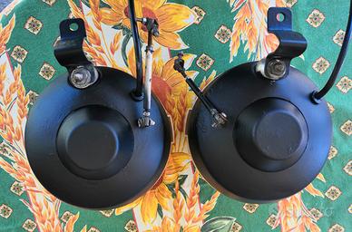 Fari Megalux Carello con protezione in plastica rigida bianca, usati per Regolarità inizio anni 90, con lampadine da 55w Buono stato generale con alcune tracce di ruggine e alcuni segni di scotch sulla cornice esterna, come si usava una volta per garantire la perfetta tenuta all'acqua