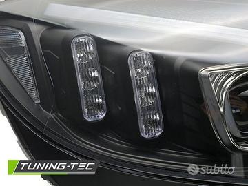 Fari anteriori per Mercedes W205 dal 2014 al 2018 con vera luce diurna a LED fibra ottica e freccia dinamica a LED Neri