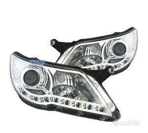 FARI VOLKSWAGEN VW TIGUAN 07-11 LUCE DIURNA LED FONDO CROMATO