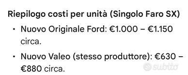 Descrizione Vendo faro Full Led anteriore sinistro originale per Ford Kuga MK3 2023 ST-Line (codice LV4B-13E015-CD). Il proiettore è perfettamente funzionante, con vetro lucido e moduli LED integri. NOTA BENE: Il faro presenta il gancio di fissaggio superiore rotto, mancante. Come da foto è presente una scheggiatura nell'angolo alto ma non ci sono infiltrazioni di acqua e umidità. Il pezzo è un ricambio originale Valeo / Ford, in condizioni buone. Si tratta della versione con tecnologia Full LED e calotta interna brunita (sportiva), con abbagliante alogeno. Dettagli tecnici (verificabili dall'etichetta): Codice OEM: LV4B-13E015-CD Tecnologia: Full LED con luci diurne (DRL) integrate, abbagliante alogeno. Produttore: Valeo (Made in Spain) Compatibilità: Ford Kuga Mk3 (CX482) Prezzo: € 300 (Prezzo del nuovo in Ford: oltre 1.000€). Consegna: SOLO RITIRO A MANO nel Lodigiano. Non effettuo spedizione data la delicatezza e il valore dell'oggetto. Formula: Visto e piaciuto dopo visione di persona per garantire la massima trasparenza sulla qualità del pezzo.