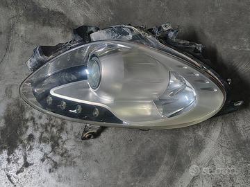 Gruppo ottico faro anteriore destro per Alfa Romeo Giulietta 940 originale, con parabola grigio chiaro. Il faro è in buone condizioni, non è opacizzato e ancora trasparente, non vi sono spaccature o crepe, solo le due macchioline trasparenti visibili nella prima foto. Funzionano regolarmente le lampade di abbaglianti, anabbaglianti e frecce, eccetto la striscia led che non si accende, ma non conosco il motivo del guasto, per cui lo vendo come parti di ricambio o non funzionante.