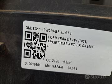 FARO ANTERIORE DESTRO FORD Transit Serie 6C11-13W029-BF SRFA/B (06>14)