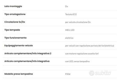 Faro a LED nuovo, mai usato. Lo sto rivendendo perché acquistato per sbaglio, ho scoperto dopo che la mia jeep monta fari XENON. AFFARE.