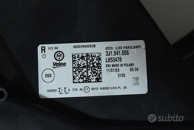 Codice ricambio: 10003940 Faro destro Full LED, VW, Passat (B9), 2023>, 3J1941006, L853478, 992941591DG, 2.0 TFSI, Benzina