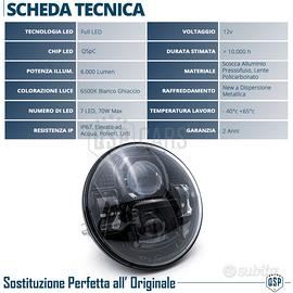 Faro FULL LED per Harley Davidson Dyna con Faro da 5,75'' Pollici, OMOLOGATO per Uso su Strada | Luce Bianca Potente 6500K | Anabbaglianti + Abbaglianti - OMOLOGAZIONE E24 | Omologato per uso Legale su Strada - NEW FULL LED | Anabbaglianti + Abbaglianti - FACILE MONTAGGIO | Presa H4, Funge da Ricambio Perfettamente Compatibile - NO ERRORE - LUCE BIANCA POTENTE | Luce Bianca 6500K, 6.000LM, 70W - RESISTENZA IP67 | Resistenza ad Acqua, Polveri ed Agenti Atmosferici INFO: Faro di ultima generazione FULL LED da 5,75"" Pollici, ispirato alle più recenti Tecnologie LED, Offre alla propria Moto un Aspetto Esclusivo e un'elevata Potenza di Illuminazione su Strada, Aumentando così la Sicurezza di Guida, nello specifico 6000 Lumen e 70W. COMPATIBILITÀ: - Harley Davidson Dyna Fat Bob FXDF (2008-2017) - Harley Davidson Dyna Low Rider FXDL (1993 2008) - Harley Davidson Dyna Low Rider FXDL (2013-2017) - Harley Davidson Dyna Low Rider S FXDLS (2016-2017) - Harley Davidson Dyna Street Bob FXDB (2006-2017) - Harley Davidson Dyna Super Glide FXD (1995-2004) - Harley Davidson Dyna Super Glide Custom FXDC (2005-2015) - Harley Davidson Dyna Super Glide Sport FXDX (1998-2005) - Harley Davidson Dyna Super Glide T-Sport FXDXT (2001-2003) - Harley Davidson Dyna Switchback FLD (2012-2016) - Harley Davidson Dyna Wide Glide FXDWG (1993-2017) MONTAGGIO: - Facile da Installare, inserire Direttamente nell' Alloggio Del Faro Moto; possiede una presa H4, pertanto non sarà necessario apportare modifiche al cablaggio, varrà la regola del PLUG AND PLAY (solo collegamento) PER INFO CONTATTARE AL 3927091031 ANCHE LINEA WhatsApp OPPURE VIA E-MAIL: rtautoitalia2018@libero.it CONSEGNA: - Effettuiamo Spedizioni 24-48H in TUTTA ITALIA - Ritiro in Sede con Possibilità di Visionare il Prodotto PAGAMENTI: - PayPal - Con Carta - Bonifico Bancario - Alla Consegna con Contrassegno