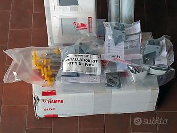 Parete laterale con grande finestra per tendalini Fiamma (Side W Pro F45/F65/F80, modello 07973-01), per camper e roulotte. Montabile sia destra sia a sinistra. Parete di fatto nuova, mai montata o utilizzata, ancora tutti gli accessori sigillati nelle loro buste. Vendo secondo la formula del visto e piaciuto con ritiro presso il mio domicilio.