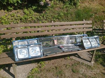 - mascherina calandra frontale griglia completa di supporto fari sx dx , qualche faro da sostituire, modello fino anno 70,griglia più fari 150 euro