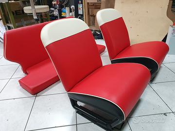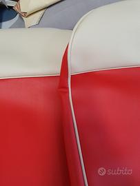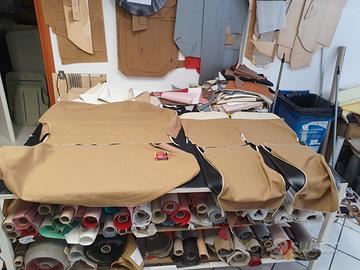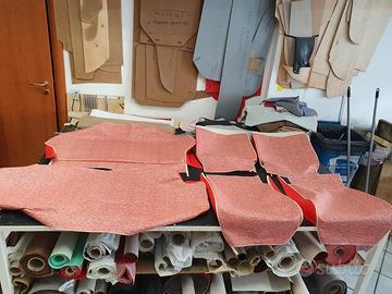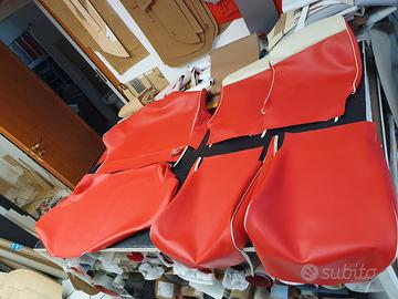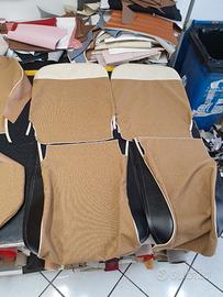 Tappezzerie per tutti i modelli 500 D in tessuto e vipla,il tutto conforme ASI trattasi di tappezzerie fisse da sostituire alle originali e no di foderine,in ordine di foto potete visualizzare ogni varietà di tappezzeria prevista all'epoca,per tutti i modelli il costo è di 150 euro la serie completa (6 pezzi)