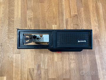Autoradio Autovox Piper d'epoca per Fiat 500, 600, 750, 850, vintage, comprensivo di plancia / consolle e cassa acustica, funzionante. Incluso un copri cassa acustica d'epoca marchiato Auto Melody. Consegna diretta a Cagliari.