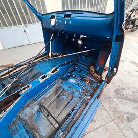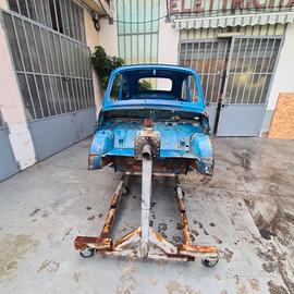telaio da ristrutturare della fiat 500 F del 1966 con libretto e targhe originali. iniziato a lavorarci e poi abbandonato il progetto. completo di carrello girarrosto. ho anche tutti i lamierati fosfatati e altri accessori