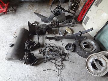 Ricambi vari: volante con piantone, devio e chiavi, mozzi, cambio(fiat500), blocco motore senza testate (fiat 126), cerchioni, cofano, parabrezza, tutto ciò che è nella foto, trapano compreso.