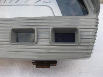 Quadro strumenti grigio per Fiat 850, usato ma in perfette condizioni, totalmente smontato e revisionato con test di funzionamento anche del tachimetro.