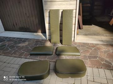 Serie completa sellerie riprodotta con materiali fedeli all'originale, filetti coprifilo, sfiati in ottone, skay di primario fornitore italiano tessuti per auto d'epoca.