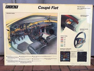 Antico originale pannello poster rigido dati tecnici cartello officina Fiat coupè turbo perdetto 16V usato all'interno delle officina autorizzate FIAT. pannello esplicativo ubicazione apparecchi elettrici/elettronici. bifacciale. solo consegna a mano, no spedizione in quanto il pannello è rigido e fragile dimensioni circa 100x70. - NON SPEDISCO -