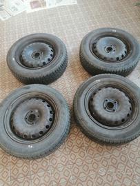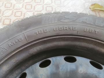 Ruote, cerchi e pneumatici, per Fiat Grande Punto, misura 185/65R15 88T. Battistrada imterno leggermente consumato su 2 delle 4 ruote, vedi foto.