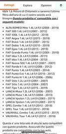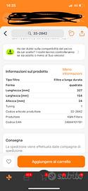 Vendo filtro a pannello k&n 33-2842 per gruppo Fiat in buono stato ma da oliare, nelle foto trovate misure e alcune auto compatibili. Preferisco scambio di persona ma volendo spedisco(non so il costo)