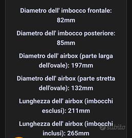 Vendo filtro aria sportivo Airbox BMC ota senza tubazioni..spedizione a carico del acquirente. Prezzo leggermente trattabile. Visualizzare costo nuovo prima di offerte ridicole.